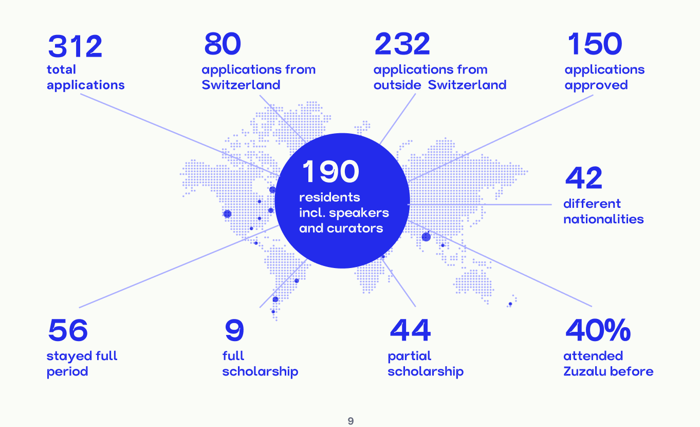 Zuitzerland's 2025 residency and pop-up village ran over 3.5 weeks in May 2025 with a core focus on furthering the discussion around Zuzalu permanent hubs.